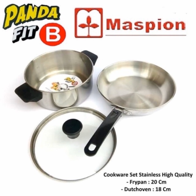Dengan lapisan anti lengket serta memiliki handle yang nyaman dipegang dalam menghantarkan panas, Maspion SSP147 - Panda Fit Set B (Fry Pan 20 cm, Dutch Oven 18 cm) membuat Anda lebih nyaman dalam menggoreng masakan. Sangat praktis untuk memenuhi kebutuhan rumah tangga Anda.Diameter : 20cmmudah dibersihkanHandle anti-slip, anti-panas dan tidak mudah patahKuat dan tahan