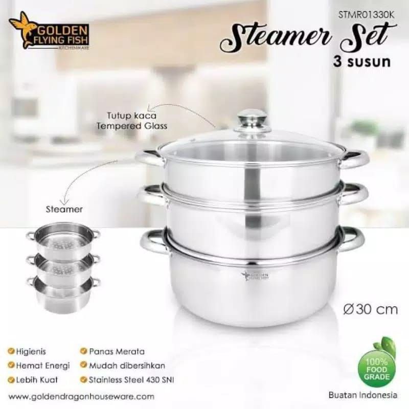 Pusat Grosir Perlengkapan di Kabupaten Flores Timur Panci Steamer Set 2 Susun Dan 3 Susun Golden Flying Fish Stainless Steell dari Golden Dragon Kota Jakarta Selatan